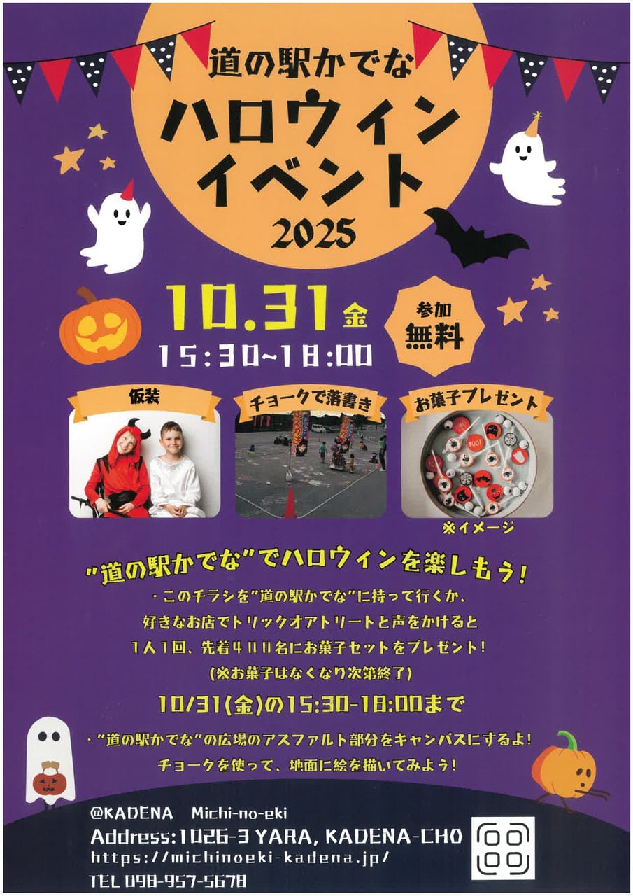 道の駅かでなにあるお店で『トリックオアトリート』と声をかけると先着400名にお菓子をプレゼント♪